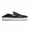 Olukai Leather | Lae‘ahi Lauhala Leather Slip-Ons Trench Blue Men